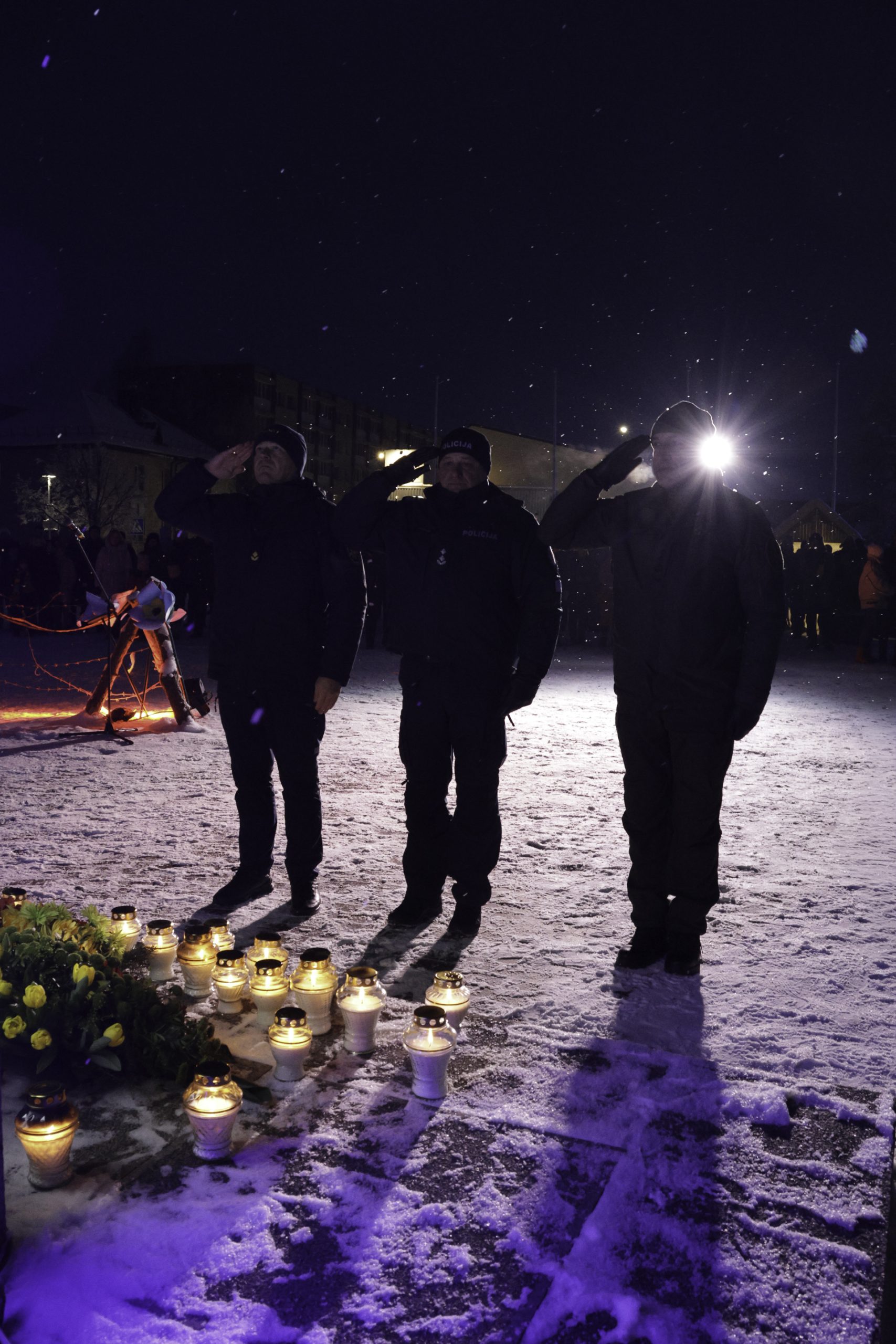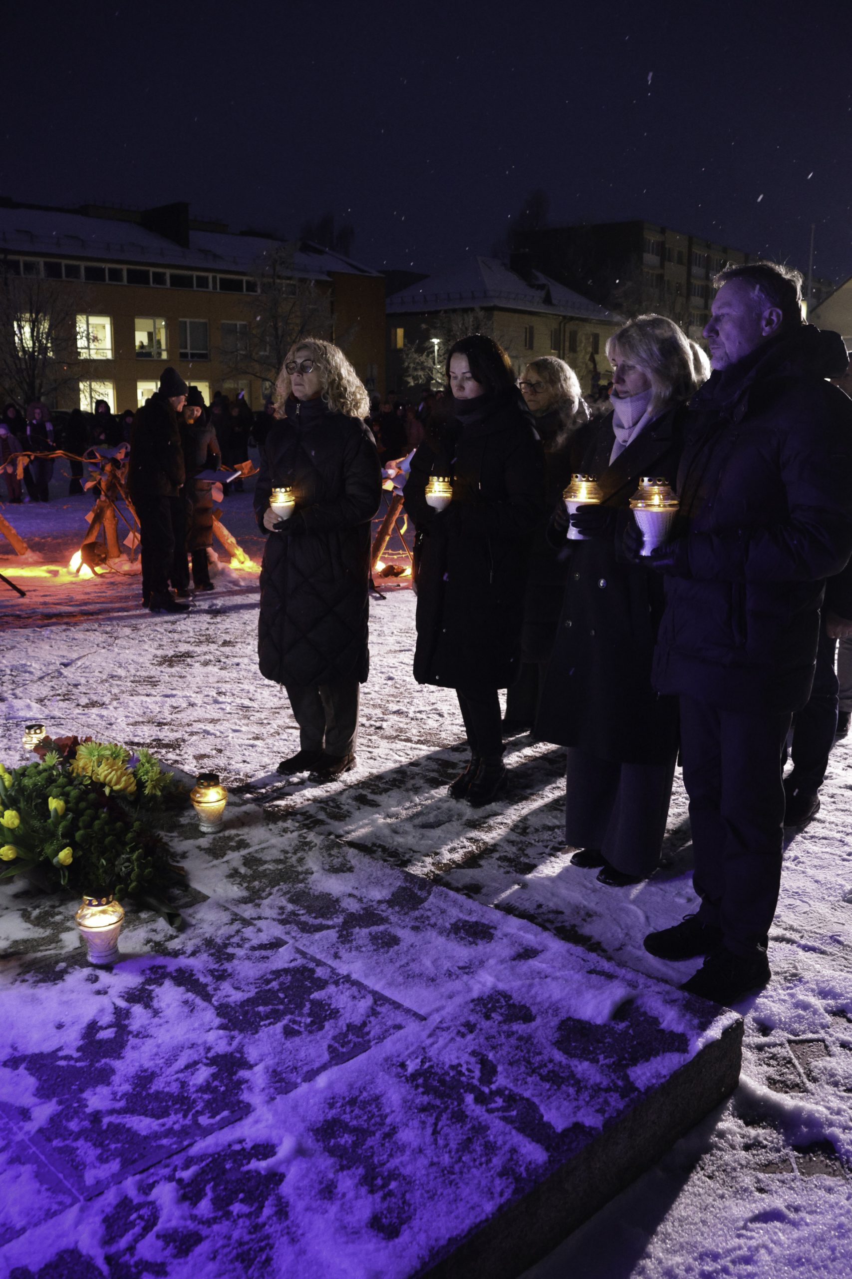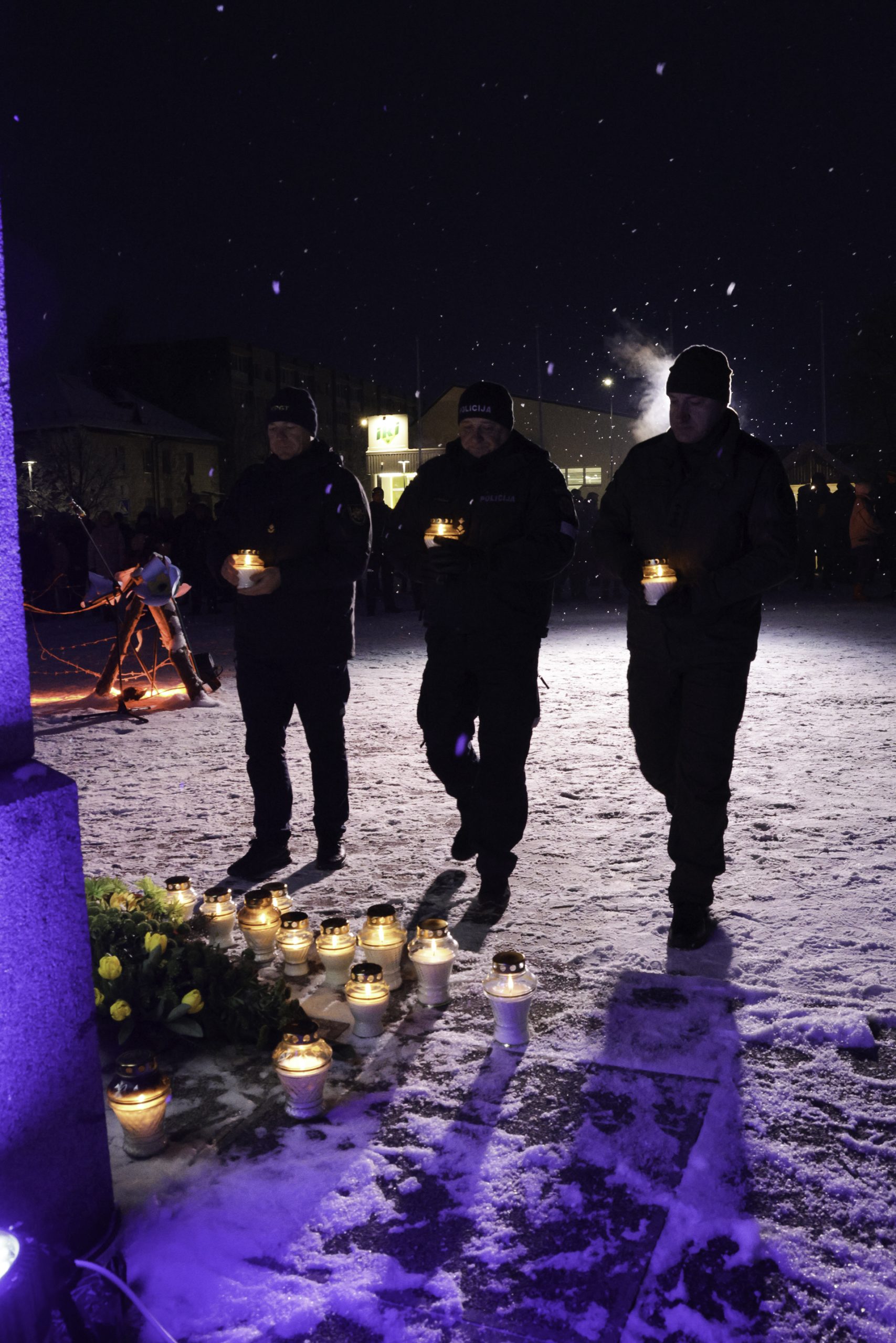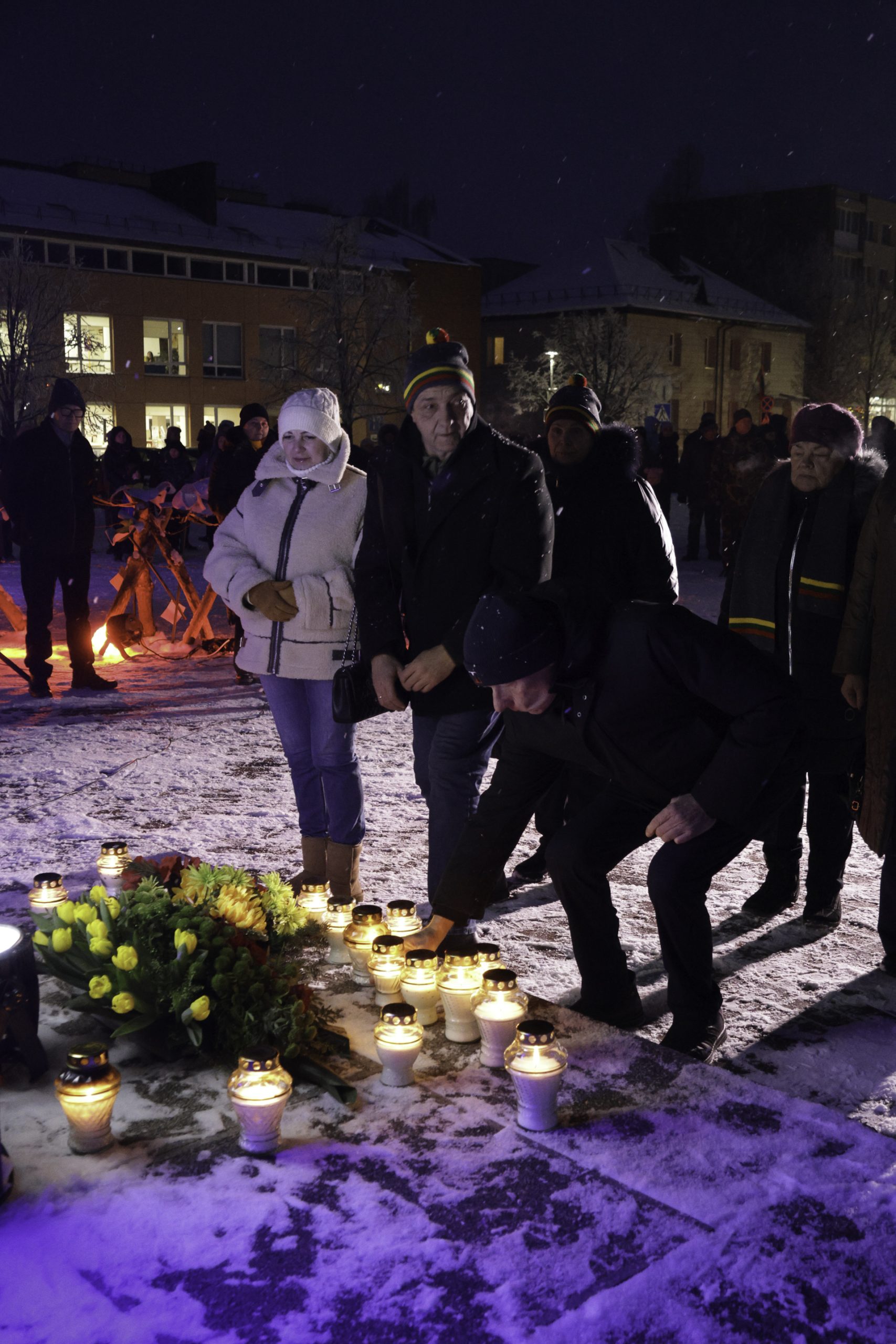 Vėliau Lazdijų Nepriklausomybės aikštėje sužibo atminimo laužai žuvusiesiems – jų šviesoje žmones jungė bendrystė, šilta arbata, skambėjo jautri muzika. Prasmingas minėjimas baigėsi Šv. Mišiomis Lazdijų Šv. Onos bažnyčioje už Laisvės gynėjus.