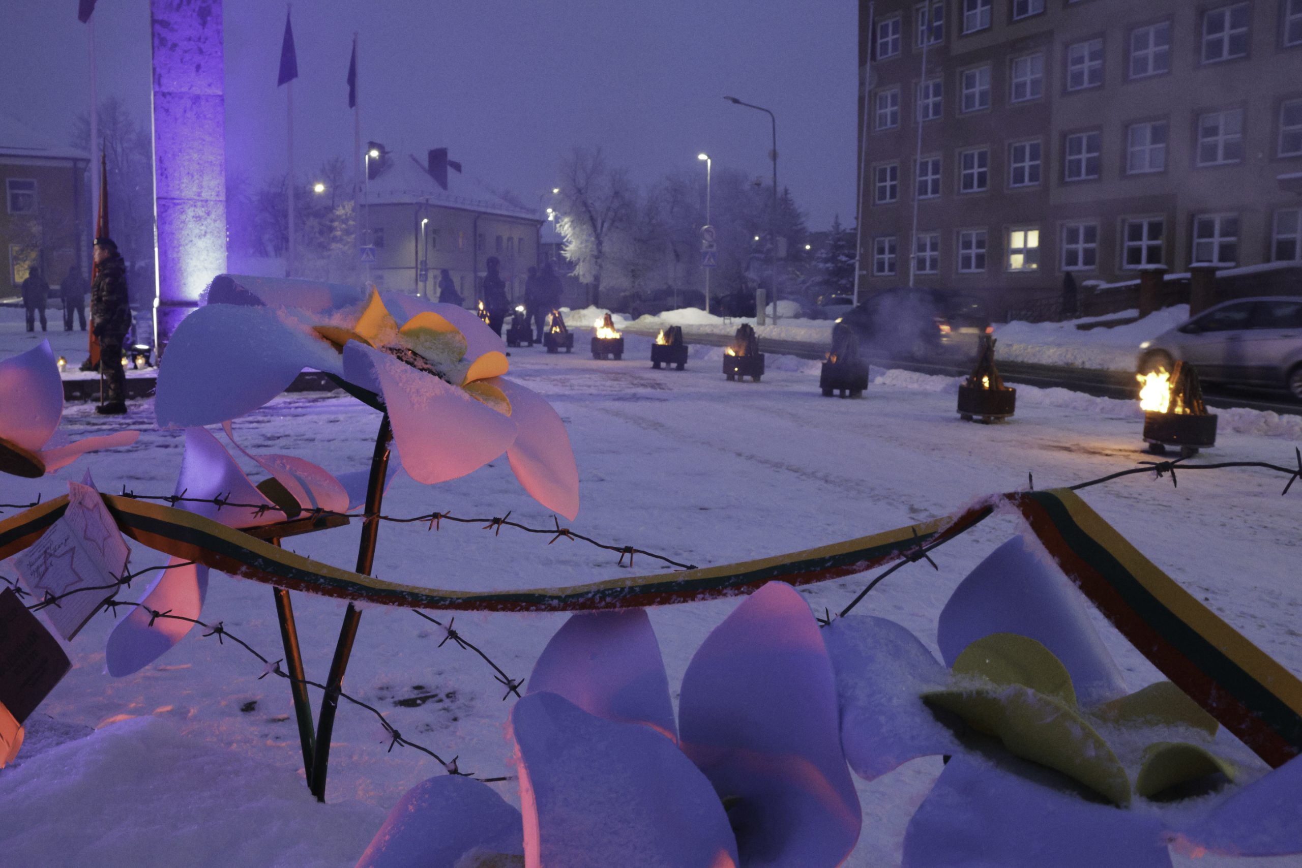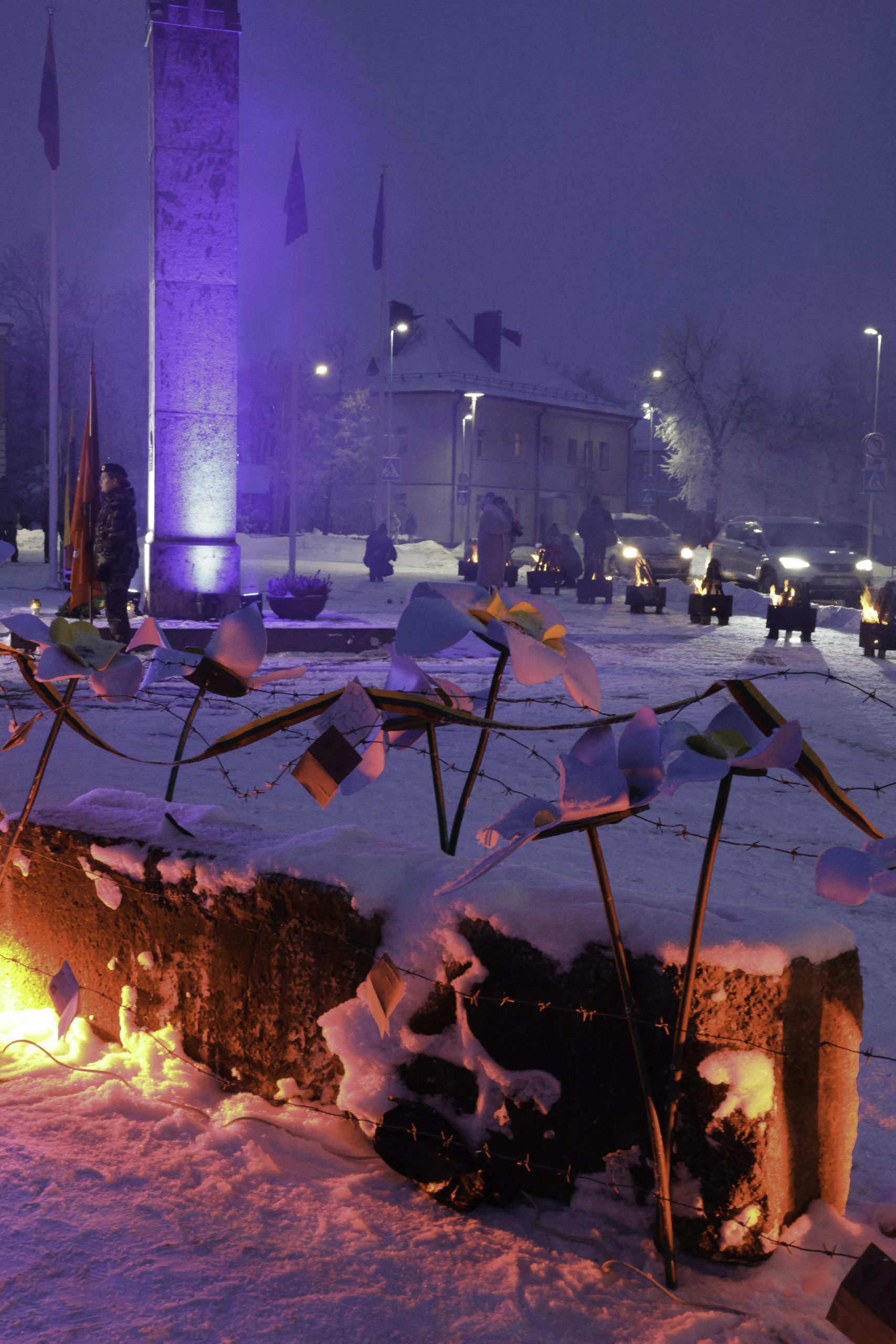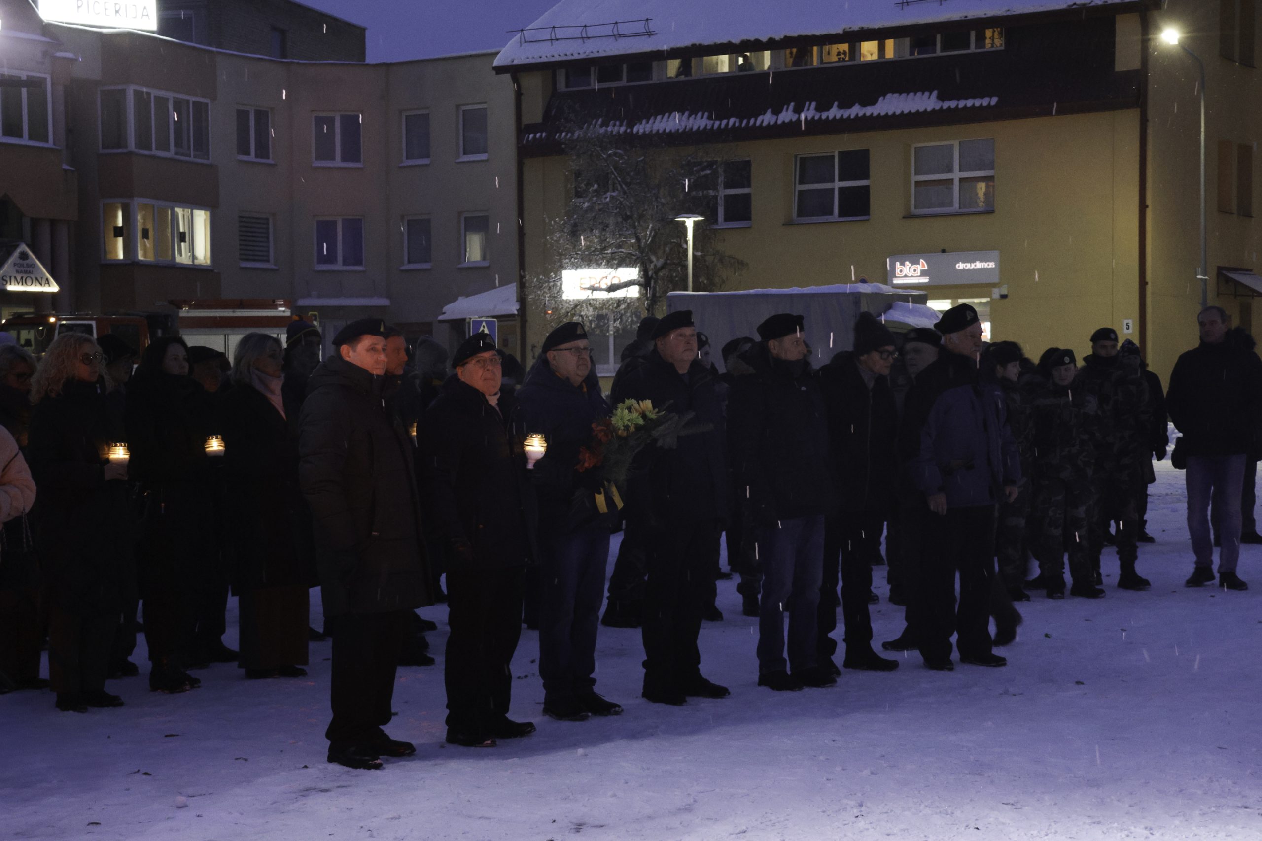 Vėliau Lazdijų Nepriklausomybės aikštėje sužibo atminimo laužai žuvusiesiems – jų šviesoje žmones jungė bendrystė, šilta arbata, skambėjo jautri muzika. Prasmingas minėjimas baigėsi Šv. Mišiomis Lazdijų Šv. Onos bažnyčioje už Laisvės gynėjus.