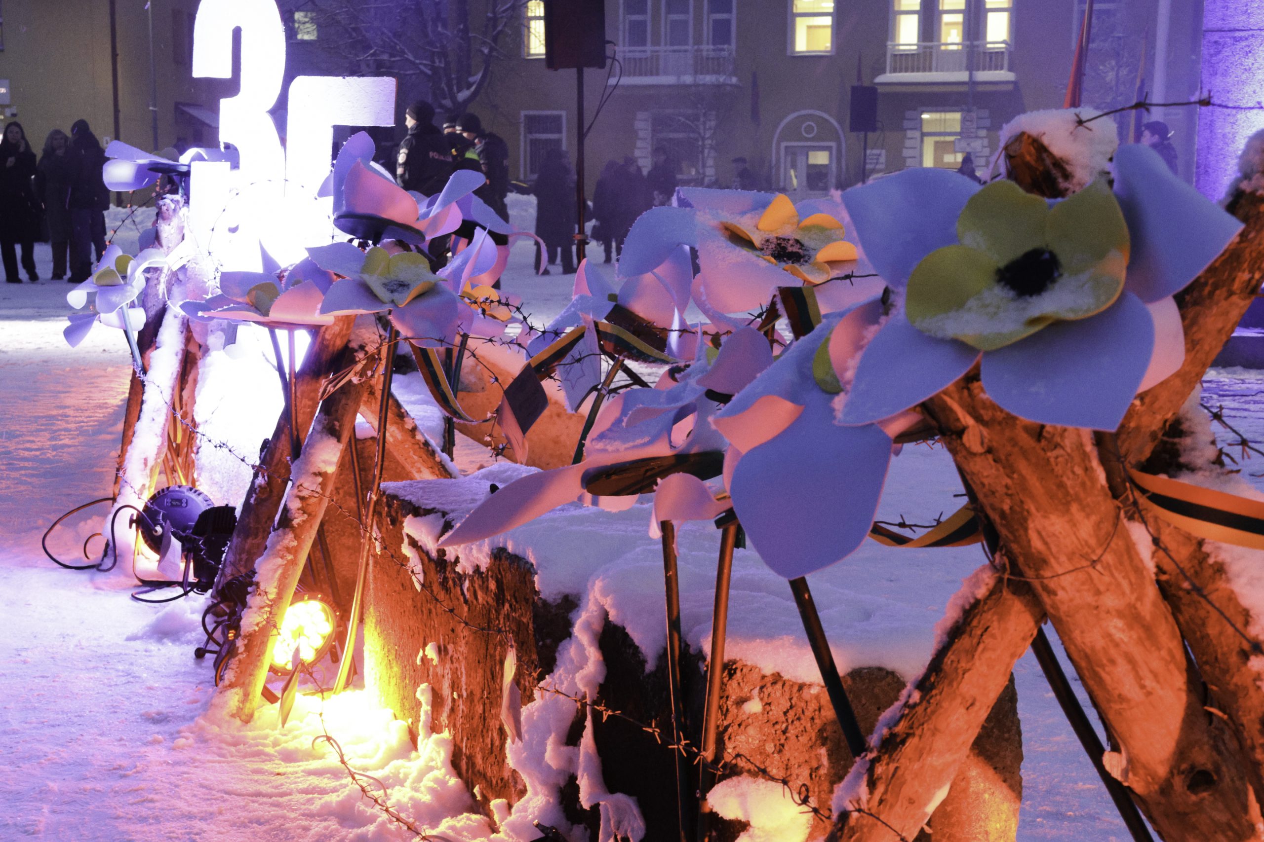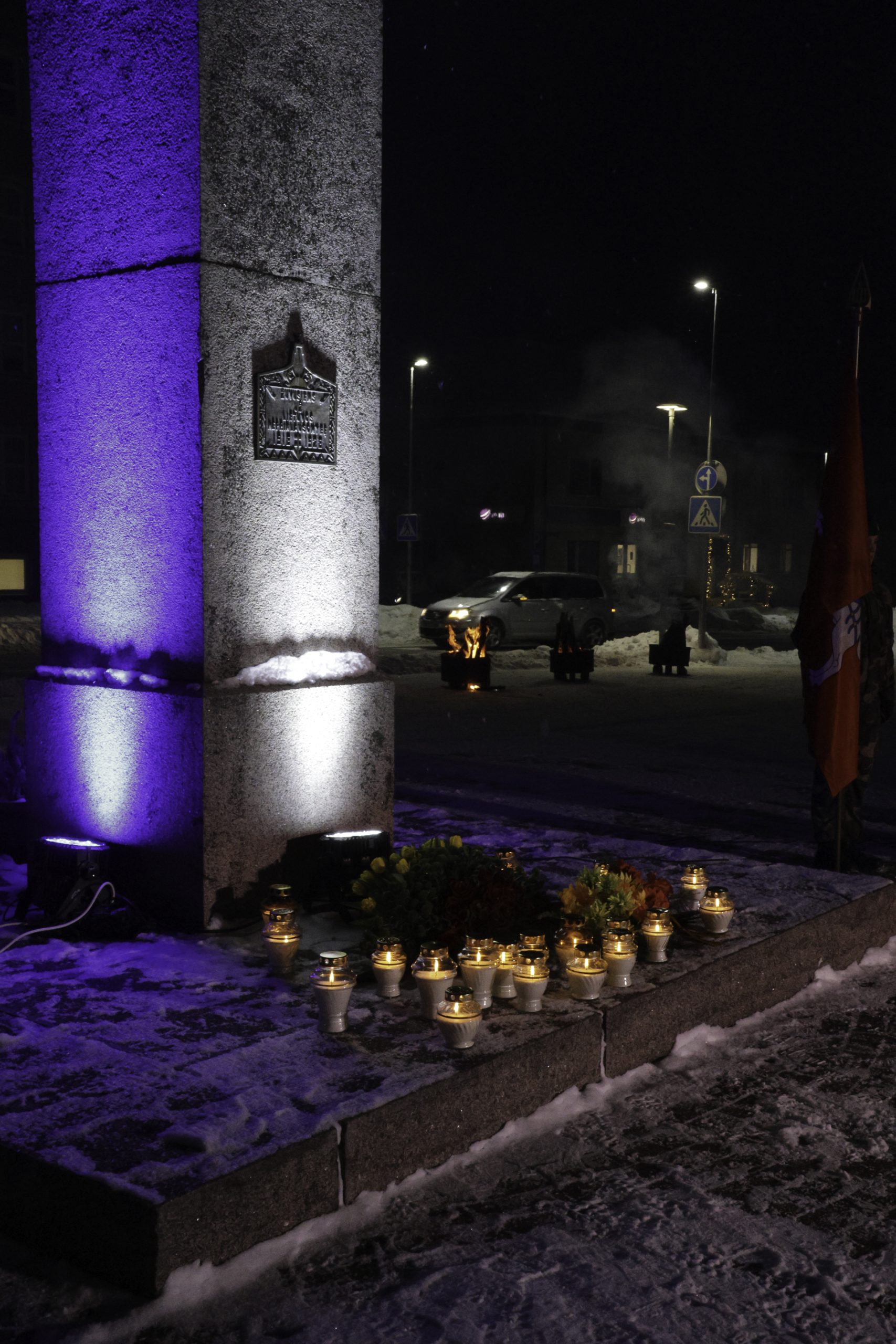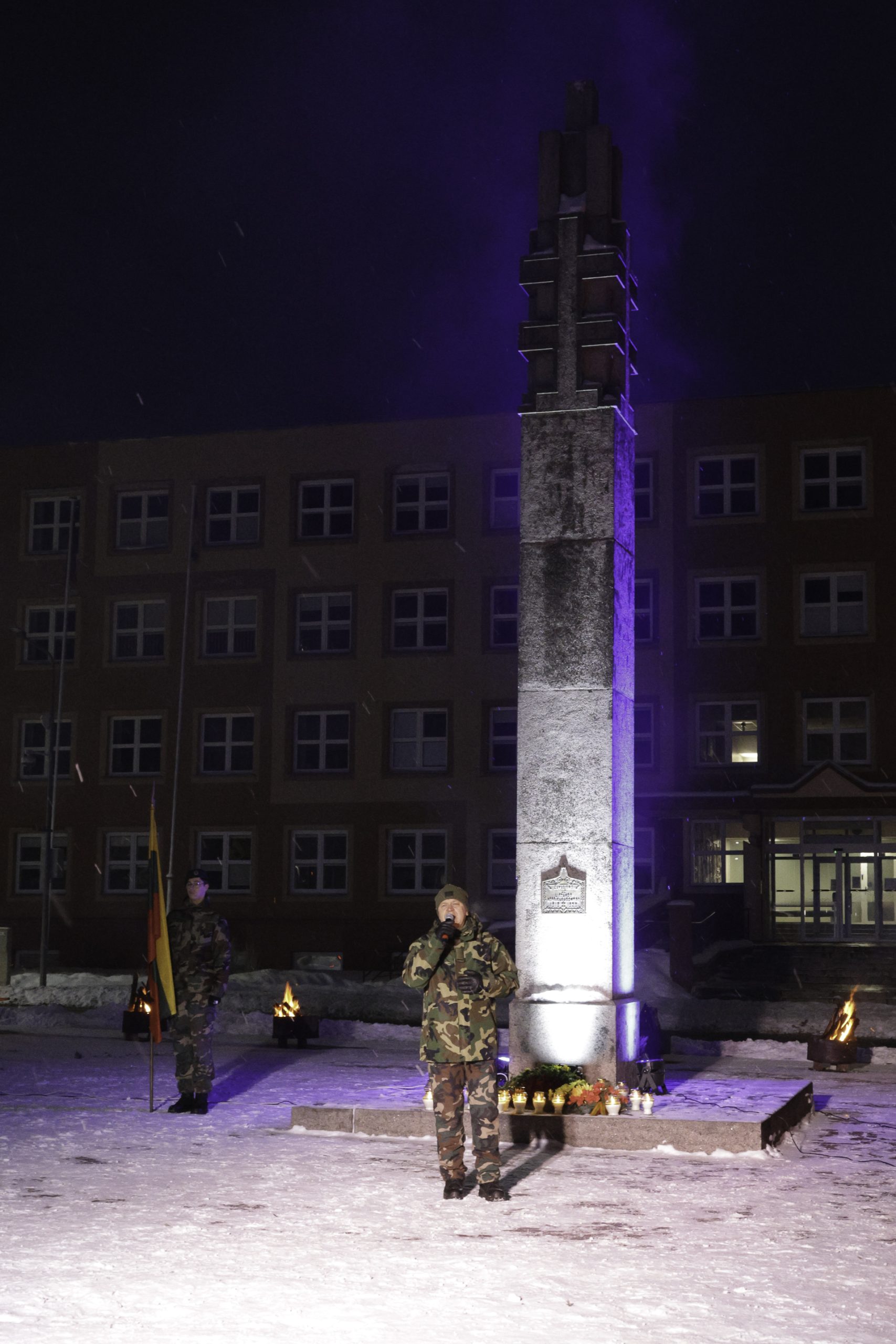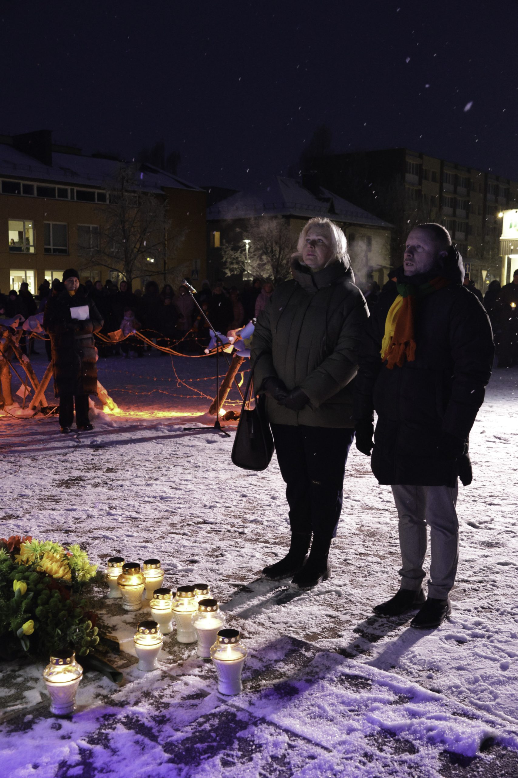 Vėliau Lazdijų Nepriklausomybės aikštėje sužibo atminimo laužai žuvusiesiems – jų šviesoje žmones jungė bendrystė, šilta arbata, skambėjo jautri muzika. Prasmingas minėjimas baigėsi Šv. Mišiomis Lazdijų Šv. Onos bažnyčioje už Laisvės gynėjus.