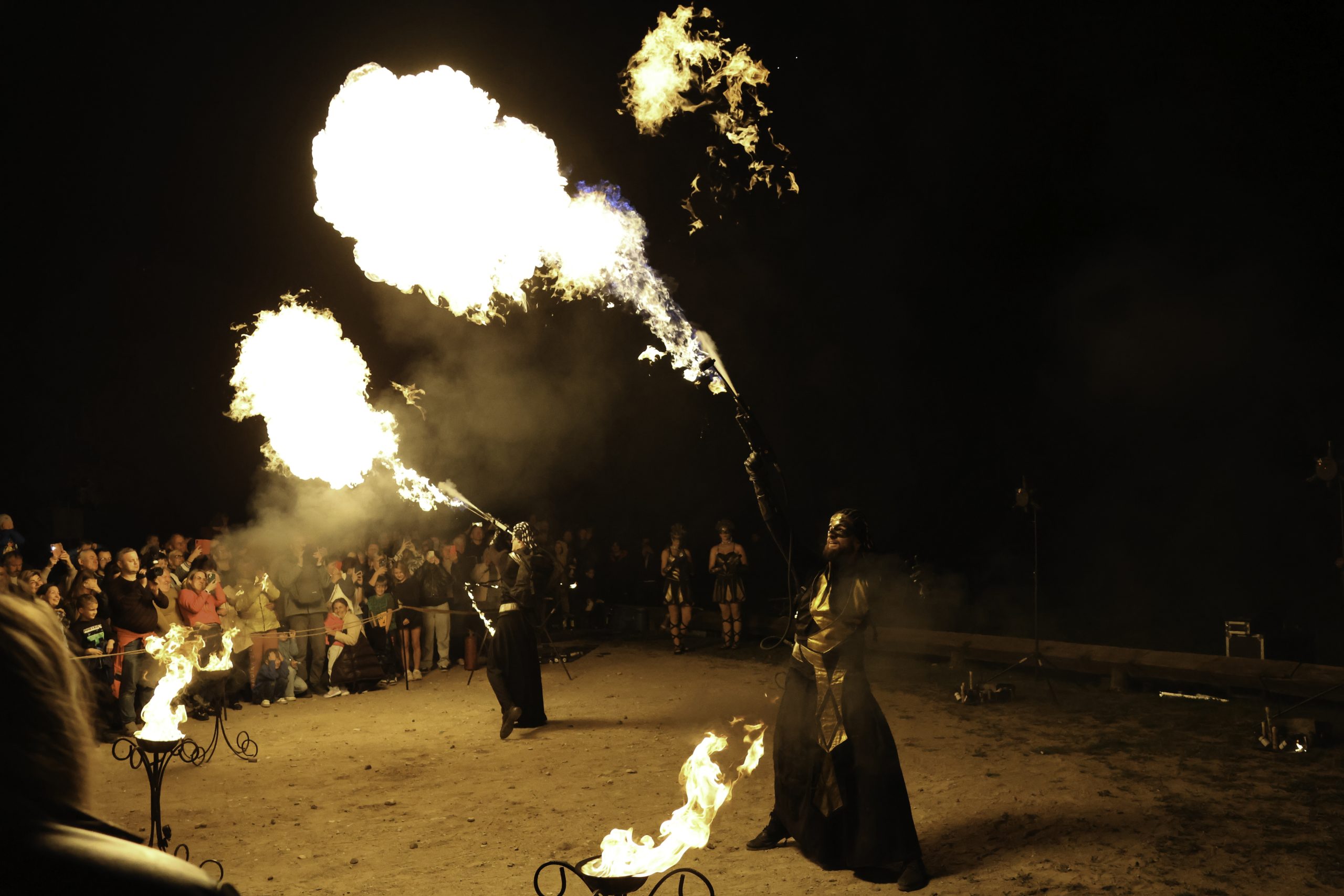Ugnimi, magija ir ekstremaliais pojūčiais žiūrovus užbūrė pirotechnikos ir specialiųjų efektų šou „Liepsnų valdovai“, kurį pristatė „Viduramžiai LT“.