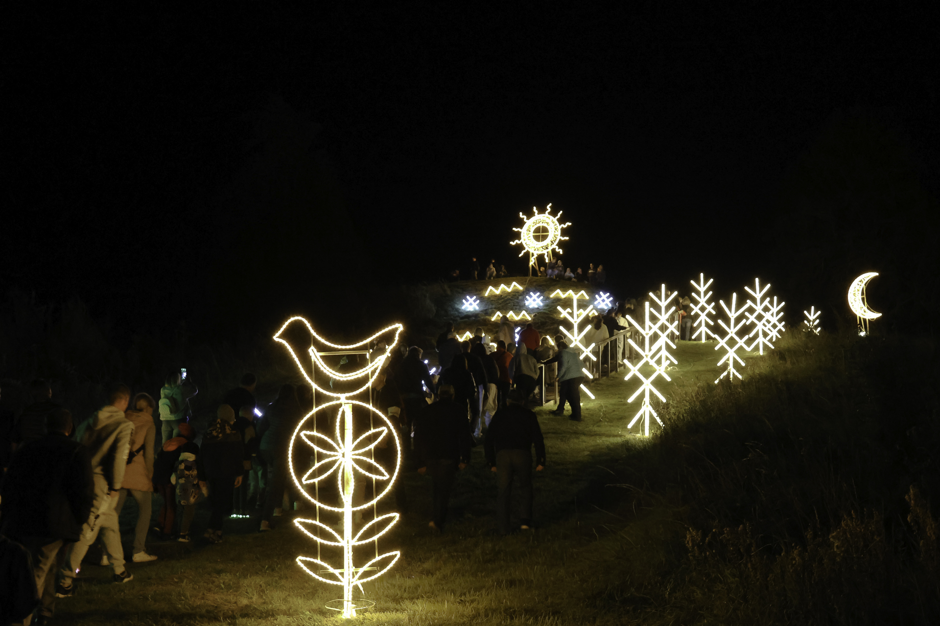 Artėjant rudens lygiadieniui, kai saulė danguje rodosi kasdien vis trumpiau, rugsėjo 19-ąją Rudaminos piliakalnis suspindo dešimtimis švytinčių ženklų.